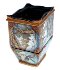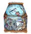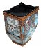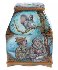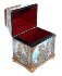 The box is made of paper-mache. Black lacquer is used to paint the exterior of the piece while red lacquer completes the interior of the box. The lid is hinged from the top of the box, and the box is rests on wavy platform. It work signed with the artist's name- Bobkov, which is his nick name, village of Fedoskino and the title.
