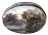 The scene is painted in different shades of white, brown and gray. There is infinite texture in the landscape. The structure of the trees is highly elaborate. A piece of mother-of-pearl in-layed as the base for the whole painting!