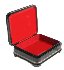 The box is constructed from paper-mache. Black lacquer covers the exterior and red lacquer covers the interior of the box.