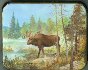 Here the artist has depicted the moose in the forest.
