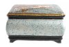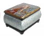 The composition is framed with a rich golden band. The box's sides are decorated with a bright mixture of aluminum and blue oil colours.