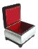 The box is made out of paper-mache. Black lacquer covers the exterior and red lacquer covers the interior of the box. The lid is hinged from the left of the scene, and the box rests on four feet. The work is signed with the initials of the artist's name.