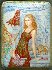 Golden foil and colour has used throughout the scene to outline and detail girl's dress, sails and flowers on a table.