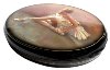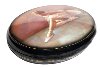 The theme of the Russian Ballet is very popular among Fedoskino artists, and this work painted by Emelianov continues this series. The background of the box is painted in gray and pink tones; the costume of the lady-dancer is snow-white. She sits on a floor and do the stretching.