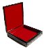 The box is constructed from paper-mache. Black lacquer is used to paint the exterior of the box while red lacquer completes the interior of the work. A hinge is fastened to the top of the scene, and the box rests on a flat bottom.