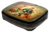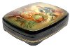 The scene is brilliantly painted in the realistic style. It is framed with a gold line, the box's sides are decorated with two parallel gold lines. The exterior of the box is painted with black lacquer. The interior is traditionally red.