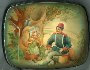 Description: This attractive box featuring a scene from Hans Christian Andersen's fairy tale "Ognivo" was painted by Lavrenkova Nataliya from the village of Fedoskino.
