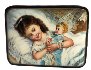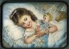 Description: Talented artist Galina Sverlova from the village of Fedoskino has painted this sentimental composition of a girl with a doll.