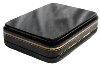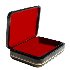 The box is constructed from paper-mache. Black lacquer is used to paint the exterior of the piece while red lacquer completes the interior of the box. The lid is hinged from the left side of the composition, and the box rests on the flat bottom. The work is signed, titled and dated (2017) by the artist.