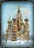 The color palette reflects the winter season and the realistic view of the cathedral. Gold paint is used to highlight the domes and crosses of the cathedral.