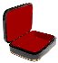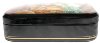The box is constructed from paper-mache. Black lacquer is used to paint the exterior of the box while red lacquer completes the interior of the work. The lid is hinged to the left of the scene, and the box rests on a flat bottom.