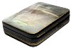 Background shows a small wooden church situated at the edge of the forest. Grey and green tones are used here to reproduce the atmosphere of a winter evening. Towering Bank of the river, covered in snow, got the pink hue of the setting sun. Mother-of-pearl is set into the sky to create a golden glow of the sunset. Another small piece of mother-of-pearl is shines through the ice of the river.