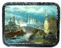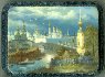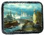 Description: This beautiful box painted by talented Fedoskino artist Alexander Mitusov shows the viewer how Moscow looked like in the beginning of the 19th century. Ramshackle wooden peasant houses are built not far from the Kremlin, the banks of the Moskva(or Moscow) River are covered with fresh vegetation, and there are no asphalted, gas-polluted roads and noisy cars.