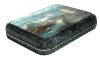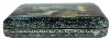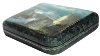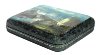 Blue tones of oils predominate here. A large piece of mother-of-pearl creates brilliance of the river. The scene and the box's sides are decorated with silver scan patterns(which is also done by hand). The box's exterior imitates the coloring of marble (dark and light blue veins and blurry spots are scattered against the black lacquered surface). The interior is traditionally red.