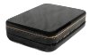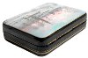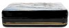 The box is constructed out of paper-mache. The remaining edge of the lid as well as the sides of base of the box are decorated using the unique dye-resist method, with a creation of the black stone-like design you see here.