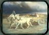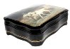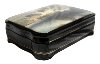 This box, painted by a well-known artist Viktor Tretiakov shows the traditional theme of a speeding troyka. This tradition sprang from the very beginning of lacquer ware production in Russia when the first lacquer workshops was founded by Peter Korobov in the village of Danilkovo (now Fedoskino). At that time the theme of peasant everyday life was very popular among the painters.
