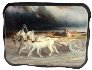 On this box we can see a sleeping (possibly tipsy) coachman in the cart.He is not controlling the horses... And the horses are bringing the cart into a storm. On the background of the composition we can see how the skies are getting darker and darked and they are almost black in the direction the horses move.