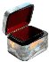 The exterior of the box is painted with black lacquer and the interior is painted with red lacquer. The lid is hinged from the top of the composition and the box rests flat. The box is not signed.