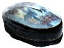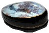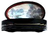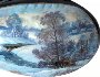 The artist has used a whole sea shell as a lid of this box, otherwords, the artist has used mother-of-pearl as base for his painting! Mother-of-pearl is shines from all over the scene through the skies, ice on a river, and through the trees...AND, the box has the second winter landscape scene on the inner side of a lid! It is also painted on a whole mother-of-pearl surface of a shell.