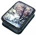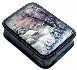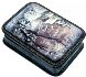 The box is constructed from a pressed paper. Black lacquer is used to paint the exterior of the box while red lacquer completes the interior of the work. A hinge is fastened to the left part of the scene, and the box rests on a flat bottom.