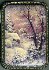 Description: Vasiliev Sergey of Fedoskino has painted this scene of winter landscape with village house. The roof of wooden house is covered with snow and long icicles hang from it.