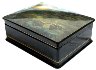 The scene is framed with a gold line; the box's sides are decorated with two parallel gold lines.