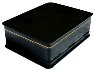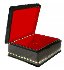 The box is constructed from paper-mache. Black lacquer is used to paint the exterior of the box while red lacquer completes the interior of the work. A hinge is fastened to the top of the scene, and the box rests on a flat bottom.