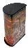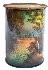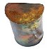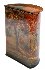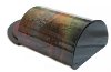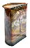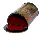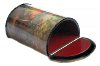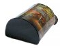 The box has an unusual shape of half-cylynder. The painting is done all the surfaces except the side on which it stands.
