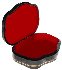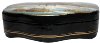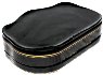 The box is constructed from paper-mache. Black lacquer covers the exterior and red lacquer covers the interior of the box.