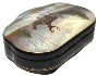 The scene is painted in brown, blue, gray and green tones. A piece of mother-of-pearl can be found in the sky almost in the middle of the composition.
