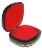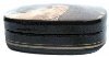 The box is constructed from paper mache. Black lacquer covers the exterior and red lacquer covers the interior of the box.