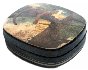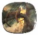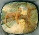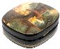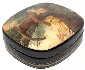 The scene is painted in brown, green and yellow tones.Two sheets of gold are in-laid in the sky between the branches of a tree.