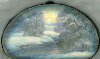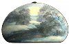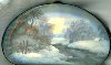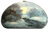 Description: These two beautiful winter landscapes has been painted by Parmenov from the village of Fedoskino.They are painted on both sides of this purse-shaped box. The compositions shows the riverbank covered with deep snowdrifts and the river that reflects the bright sun rays.