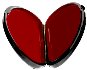 The box is constructed from paper-mache. Black lacquer is used to paint the exterior of the box while red lacquer completes the interior of the work. The lid is hinged from the bottom of the compositions, and the box rests flat. The work is signed with the artist's name.
