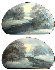 Both scenes are painted in white, grey and blue tones that fit excellently for reproduction of a winter landscape. Mother-of-pearl is used to create the sun reflection in the skies. Mother-of-pearl is used on the scenes on both of the sides.