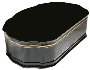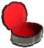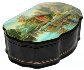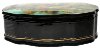 The box's exterior is painted black, the interior is red. The lid and the box's sides are decorated with elegant gold lines.