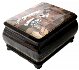 The painting is framed with a thin gold line. Two parallel gold lines wrap around the box's sides.
