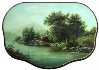 This elegant scene is a beautiful creation of Gennadiy Petrov. It shows a picturesque view of the lake surrounded with mountains. On a front we can see a small house on a shore surrounded by trees.