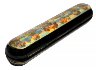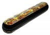 On this pencil-box (or cigar) shape box we can see the whole picturesque of fields, forest and river. A flash of sunset colors on the sky is achieved with the help of a sparkling gold metal foil. Painterly skill creates a dramatic interplay of light and shadow within the scene.