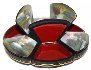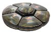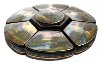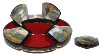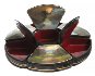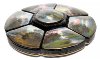 Description: This originally shaped box with several compartments was painted by Parmeonov Sergey. The set includes seven compartments that rest on the round shaped tray. Six of the seven lids are openning up as they are hinged while the central lid can be easily moved away from the tray. The set looks like a daisy and each of its petals is a compartment!