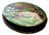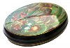 The painting is framed with a gold line.The box's sides are decorated with two parallel gold lines.