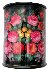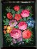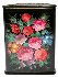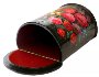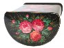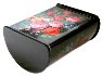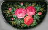 The box has original shape and painting is covered almost all the surface of the box except for the side on which it stands. The artist has picked up for his painting on the box rose flowers. The scene is painted in bright and red oils over the black background with photo-like quality. Very detailed work!