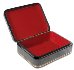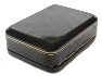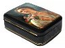 The scene is framed with a thin gold line.Two parallel gold lines are decorated the sides of the box. The box's exterior is painted black and the interior is red.