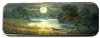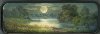Description: This peaceful landscape was pained by talented Alexander Simonov from the village of Fedoskino. It features typical Russian countryside in the middle of the Summer. It is filled with fields covered with grass and bushes with the dense of forest, the river running between the banks, and large full Moon is shining in the sky over the forest trees. A small wooden boat is pulled half to the bank of the river.