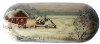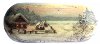 Description: This winter peaceful landscape scene is a creation of the talented Fedoskino artist Tatiana Tipyakova. This lacquer box depicts a village house on the edge of the forest. Behind the symbolic fence there is a haystack covered with snow.