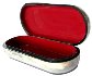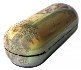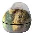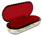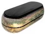 The box is constructed from paper-mache. Black lacquer is used to complete the exterior bottom of the piece while red lacquer completes the interior of the box. The lid is hinged at the top and the box rests flat. The work is signed with the artist name and dated (2014).