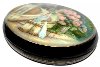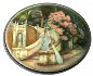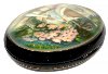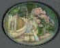 This attractive composition was painted by a talented artist Yuriy Butsynsky of Fedoskino. It shows a beautiful lady going up the stairs surround a blossoming garden.