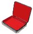 The box is constructed from paper-mache. Black lacquer is used to paint the exterior of the box while red lacquer completes the interior of the work. The painting is framed with a gold line. Two parallel gold lines are decorating the sides of the box.
