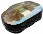 This gorgeous box painted by Sergey Parmeonov of Fedoskino depicts the clarity and beauty of a Russian Countryside. The scene depicts a river and the surrounding landscape filled with trees and grass fields.