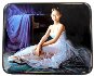 The theme of the Russian Ballet is very popular among Fedoskino artists, and this work continues this series. The background of the box is painted in blue and black tones; the costume of the lady-dancer is snow-white, but because of the light, it has a blue shade. The quality of the painting is outstanding, details of the costume are just amazing! The face is also painted very precisly.